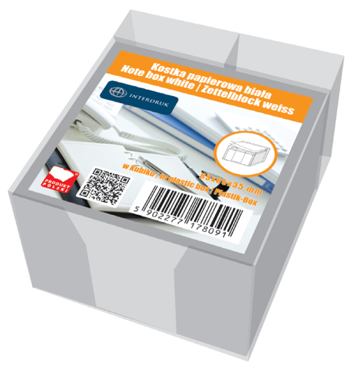 / Bloczek kartek białych 85 x 85 x 35 mm w pojemniku, Interdruk