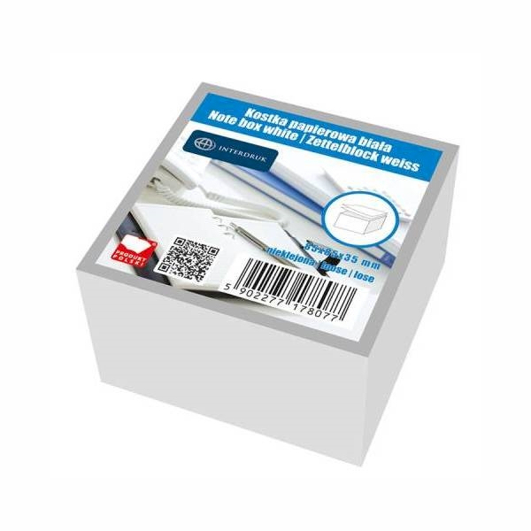 Bloczek kartek białych 85x85x35mm nieklejonych, Interdruk
