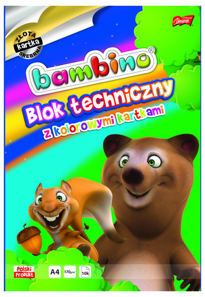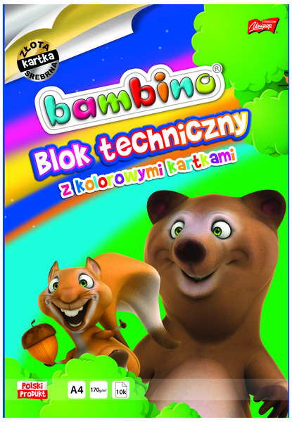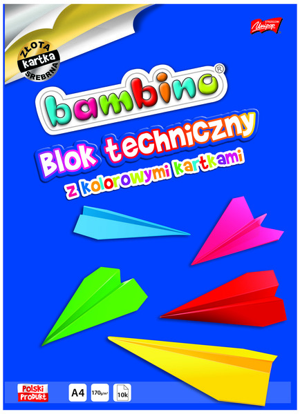/ Blok techniczny z kolorowymi kartkami A4, 10k (złota i srebrna)170g Bambino, St.Majewski