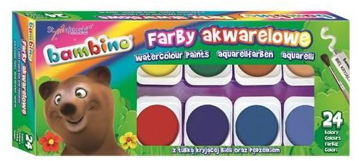 / Farby akwarelowe 24 kol. duża pastylka Bambino, St.Majewski