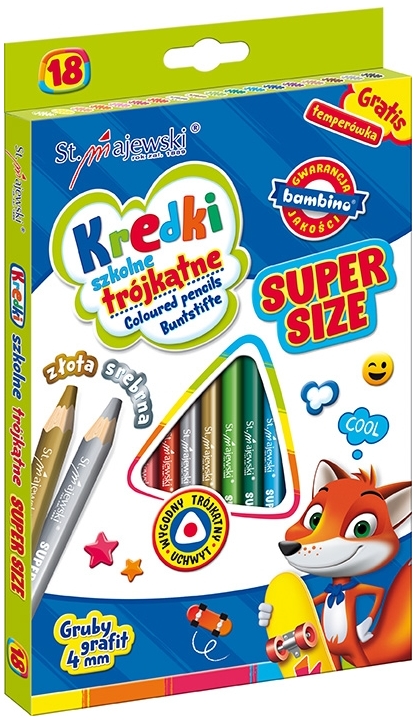 / Kredki 18-kol. trójkątne + temperówka, Super Size, Bambino