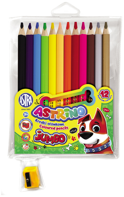 Kredki ołówkowe okrągłe 12-kol. Jumbo w drewnie + temperówka Astrino, Astra