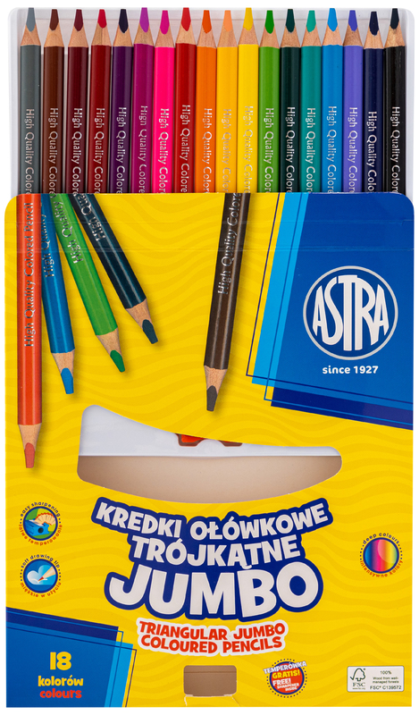 / Kredki ołówkowe trójkątne 18-kol. Jumbo z temperówką, Astra