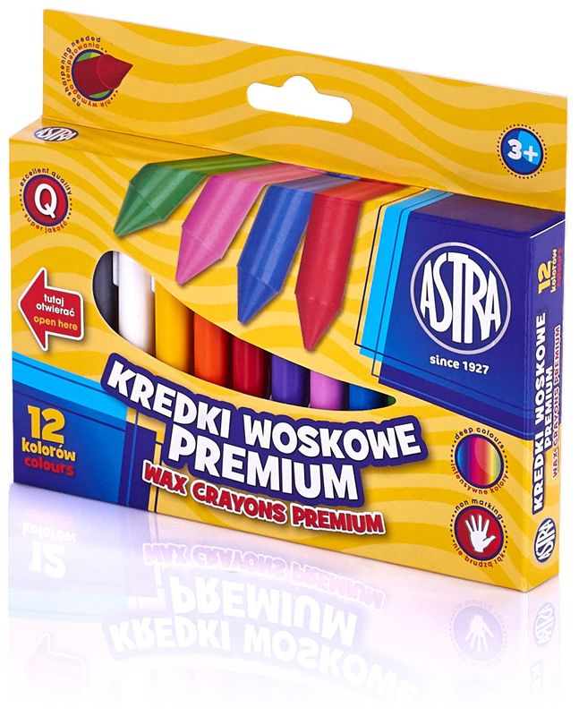 Kredki woskowe Astra charakteryzują się żywymi i niezwykle intensywnymi kolorami.Nie wymagają temperowania i są odporne na złamania.Kredki nie brudzą rąk, a jednocześnie zawierają wysokiej jakości pigmenty i wosk.