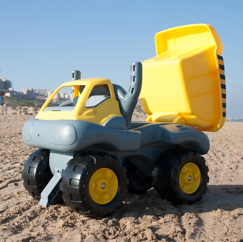 Duży pojazd przegubowy wykonany z mocnego i trwałego plastiku do zabawy w piasku i na