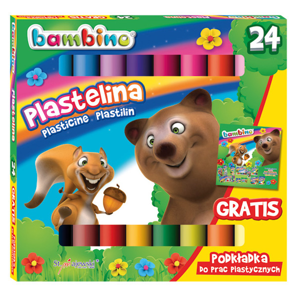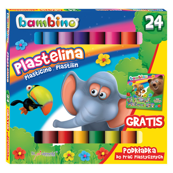 Cechy produktu: elastyczna, łatwo się modeluje intensywne, żywe kolory nie przywiera do podłoża nie brudzi rąk pozwala na tworzenie prac metodą millefiori bezpieczna dla dzieci spełnia wymagania zasadnicze dyrektywy Parlamentu Europejskiego i Rady 2009/48/WE z dnia 18 czerwca 2009 w sprawie bezpieczeństwa zabawek oraz wymogi odpowiednich norm zharmonizowanych ilość kolorów: 24, w tym dwa kolory brokatowe: złoty i srebrny waga laseczki plasteliny: 15 g gratis: podkładka do prac plastycznych
