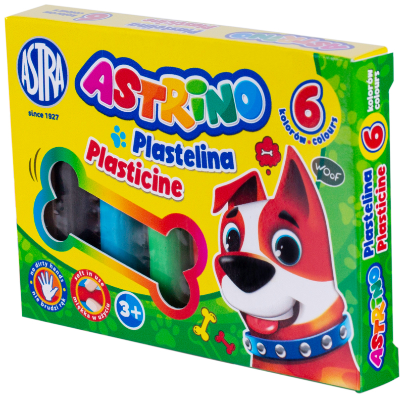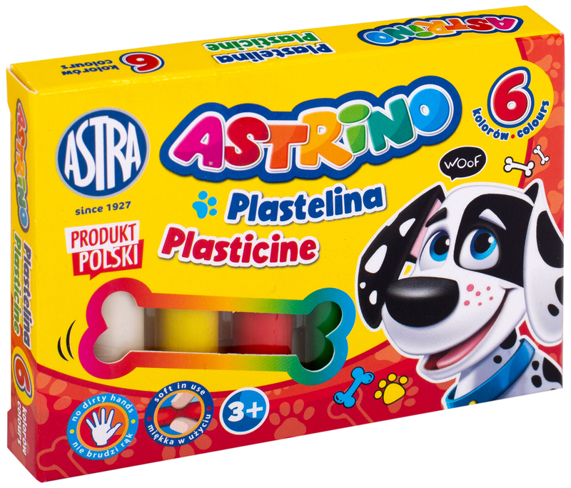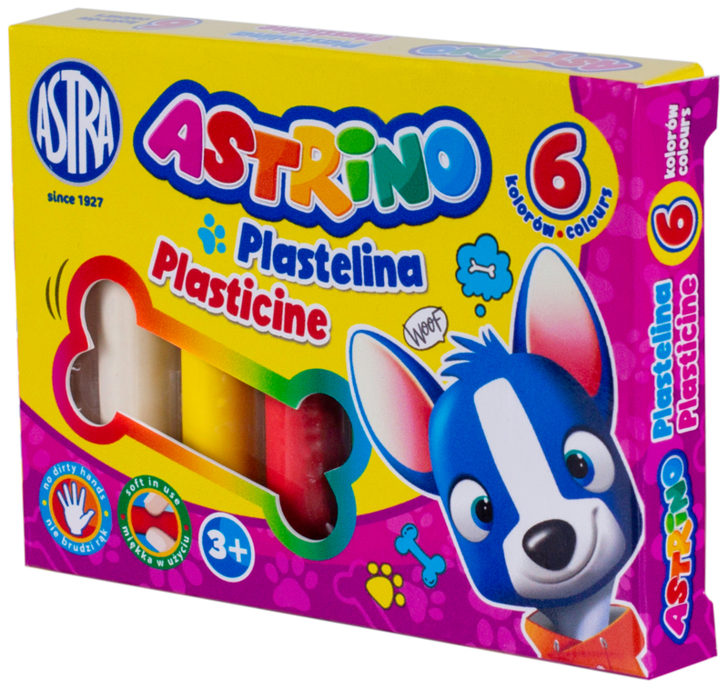 Plastelina Astrino jest delikatna w dotyku i łatwa w modelowaniuAstrino nie klei się do rąk, nadaje się do wielokrotnego użycia.Plastelina wyprodukowana jest z bezpiecznych składnikówTo znakomity produkt do nauki i zabawy w szkołach, przedszkolach i do zajęć terapeutycznych. Opakowanie 6 kolorów.