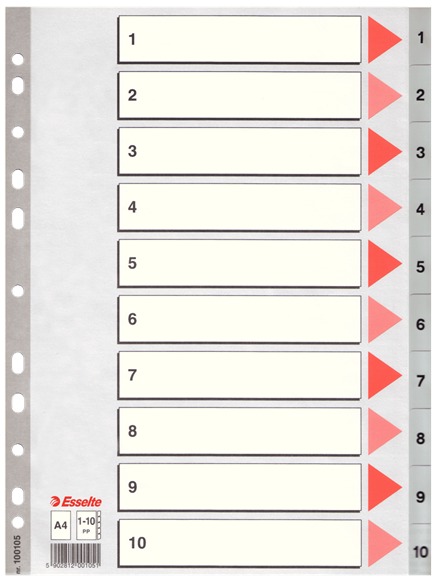 ilość Przekładki A4 1-10 szar-PP+opis, Esselte