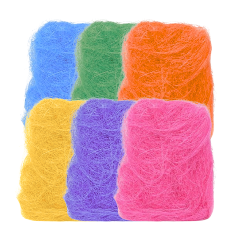 Sizal w bogatej gamie kolorystycznej. Doskonały materiał, jako element dekoracjyjny. Idealnie nadaje się również do wypełniania koszy, prezentów, ozdabiania bukietów i wielu innych kreatywnych zastosowań.