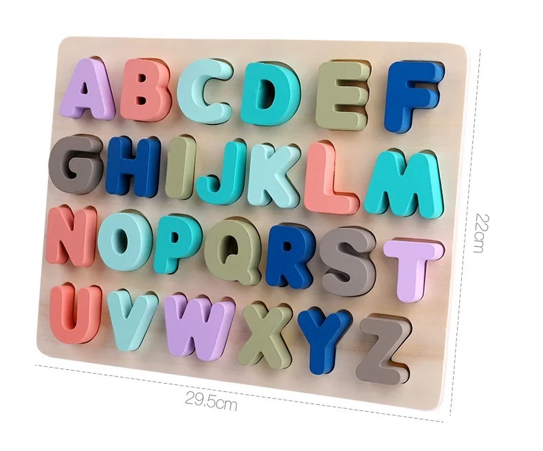 Drewniana układanka z kolorowymi elementami oraz plansza ze specjalnymi miejscami do dopasowywania poszczególnych elementów. Dla ułatwienia zabawy, w miejscach odkładania dużych liter są ich kontury a rozmieszczone kolejno pozwolą dziecku na zapamiętanie kolejności alfabetu. Drewniana układanka wspomaga trening cierpliwości, koncentrację oraz spostrzegawczość. Ponad to, dziecko poprzez wykonywanie precyzyjnych ruchów rączek wspomaga rozwój motoryki. Kolorowa tablica z wyjmowanymi literkami to sposób na wspaniałą zabawę połączoną z nauką.