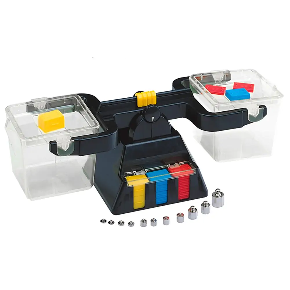 Zestaw składa się z wiader i pokrywek oraz 14 plastikowych i 11 metalowych ciężarków, co umożliwia naukę pojęcia wagi i objętości. Zabawka wspiera naukę matematyki oraz rozwija logiczne myślenie, pamięć, a także umiejętności liczenia i porównywania wag. To doskonałe narzędzie do nauki poprzez zabawę.