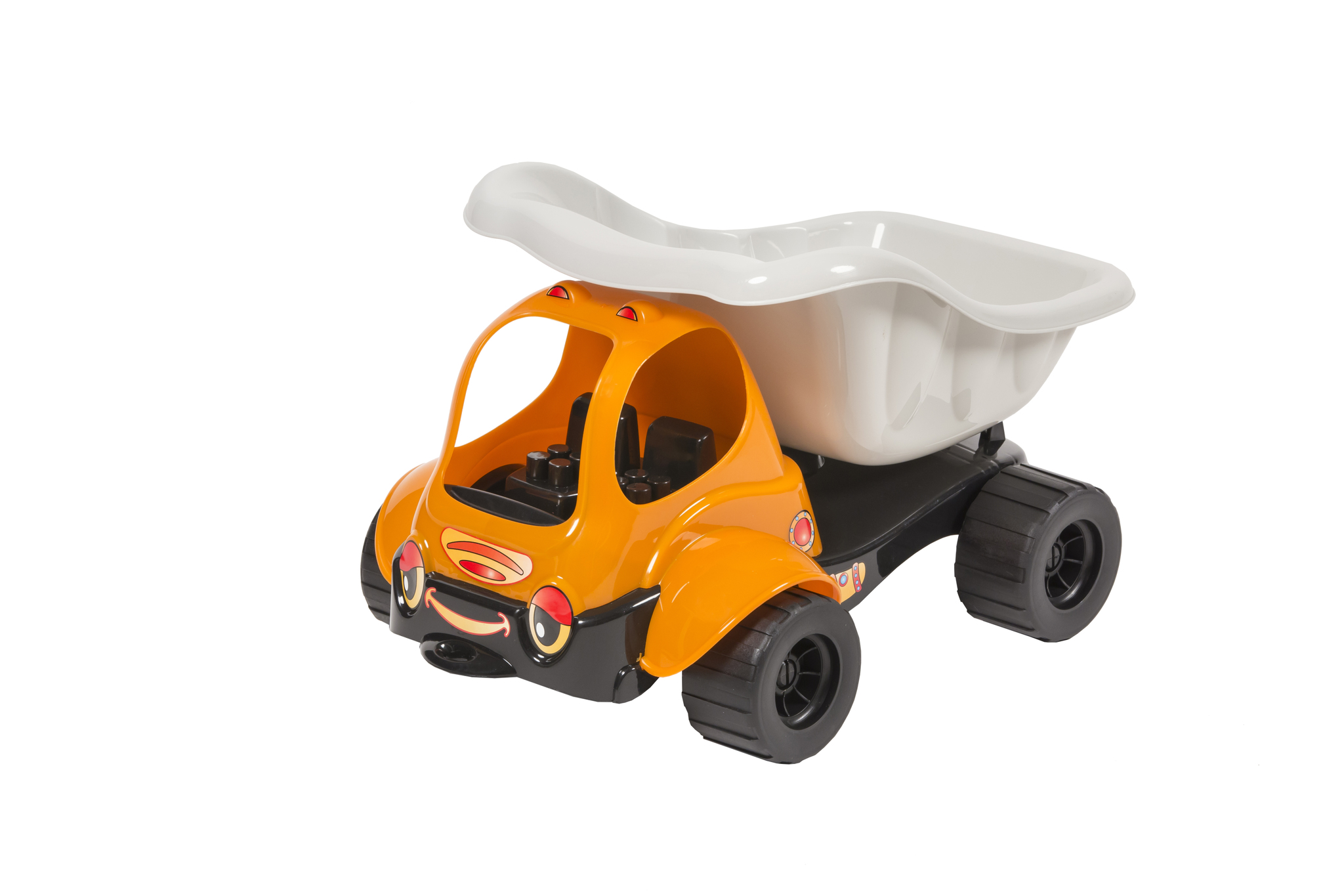 Wywrotka “bączek” to samochodzik inny niż wszystkie. Spośród zabawek tego typu wyróżnia się nietypową konstrukcją oraz kolorystyką. Uniwersalny charakter produktu sprawia, że dziecko ma możliwość zabawy w domu i na dworze. Kolorystyka poszczególnych elementów może ulec zmianie.