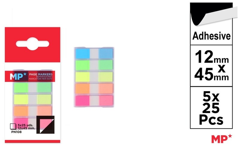 Zakładki indeksujące fluorescencyjne 7-kol. 9x45mm PN109, Main Paper