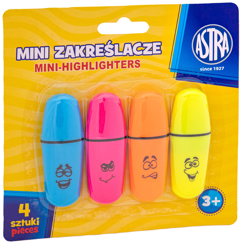 Zakreślacze mini 4szt. na blistrze, Astra