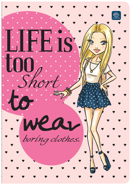 Zeszyty w formacie A5 lub A4. Okładki zabezpieczone błyszczącym lakierem. Zaokrąglone rogi (A5) lub ostre narożniki (A4). Modny design, duża różnorodność wzorów.